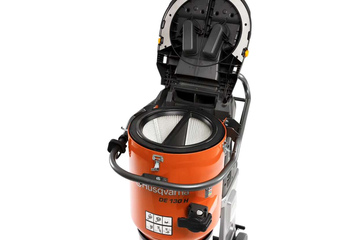 EL DE 130 H es un aspirador monofásico H/HEPA de alta productividad diseñado para trabajar en aplicaciones exigentes como la preparación de suelos. Puede trabajar de forma conjunta con equipos de debastado, multicorte, fresado, granallado y con herramientas manuales de mayor tamaño. La tecnología Auto-Pulse de Husqvarna garantiza un caudal de aire elevado y constante sin apenas disminuir la capacidad durante todo el ciclo de trabajo. Con la tecnología e-flow, la velocidad del aire se ajusta y optimiza automáticamente, ahorrando hasta un 30 %* más de energía. Este robusto aspirador también es fácil de transportar gracias a su tamaño compacto. Su alto nivel de resistencia al agua (IPX4) permite una descontaminación rápida y eficaz. Además, las funciones de conectividad integradas permiten acceder rápidamente a la ubicación, a los datos del servicio, al estado del filtro y a otra información de uso valiosa.